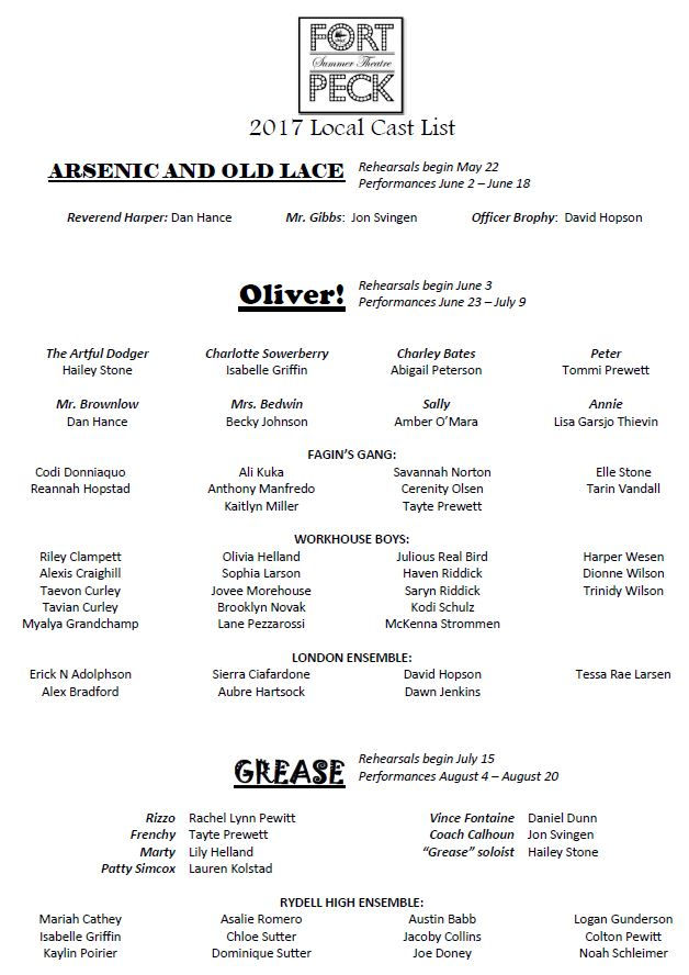 COMMUNITY CAST AUDITION INFO.